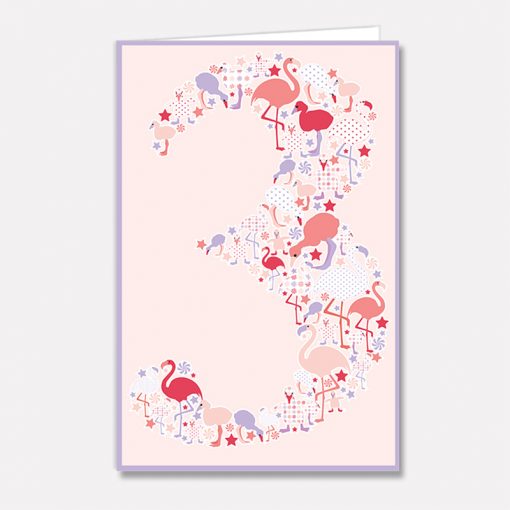 Stort kort 3 år flamingo